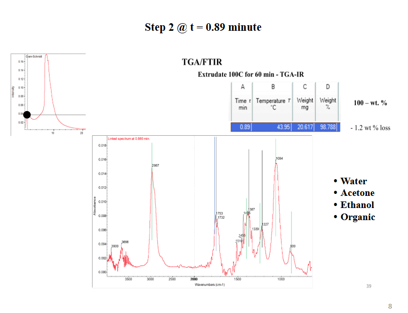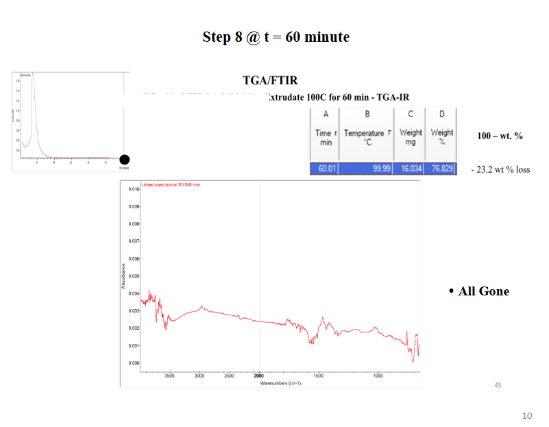 With an in-line FTIR gas cell we identified all the volatiles lost during a 1-hour soak.